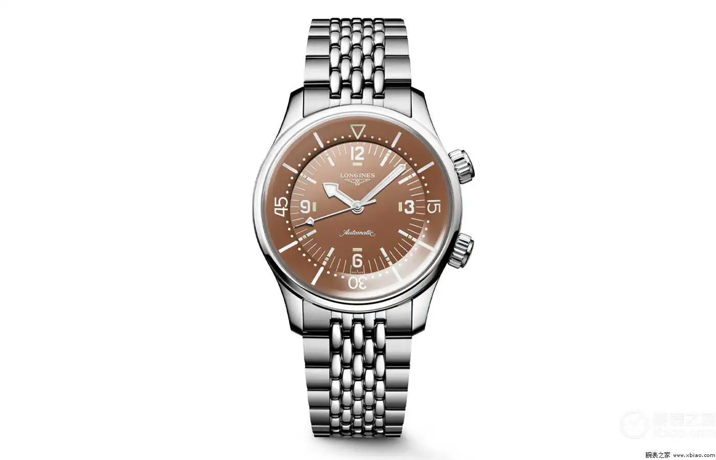腕表点评:2024年,推出全新经典复刻系列传奇潜水员腕表,还原1959 年初代潜水腕表的经典设计。早在1937年,浪琴表就推出首款带有防水按钮的计时码表,并在1938年获得专利。1958年,浪琴表正式发布旗下首款。一年后,浪琴表开发出一款专为水下探索设计的腕表,传奇潜水员腕表的标志性设计由此诞生。其实在2023年,这一系列推出过全新设计,2024年,浪琴在此基础上为其带来更多颜色的表盘款式。腕表使用精钢39毫米,搭配内置旋转表圈和双表冠,这也是浪琴表传奇潜水员腕表最标志性的设计。表圈位于表壳内部,不易受误触和碰撞的影响。位于2点位的旋入式表冠则负责操控表圈。新款腕表采用全新的赤褐色表盘(同时还有绿色款和灰色款),指针和时标均涂有Super LumiNova 夜光涂层。腕表获得潜水表认证(ISO 6425),具备300米防水性能。旋入式表背有潜水员图案,也是这一系列的标志性特征。腕表内部搭载浪琴表专属L888.6自动上链机芯,内置硅游丝,通过了COSC认证,动力储存达到72小时。
