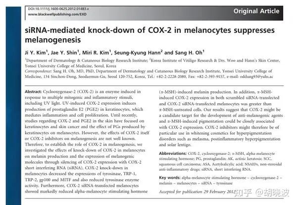 而且这一篇研究,还把COX-2和α-MSH给关联了起来,后者就是很多产品说的黑色素信号,比如紫外线啊,炎症啊都可以激活它,现在欧诗漫,OLAY都在讲这个信号。