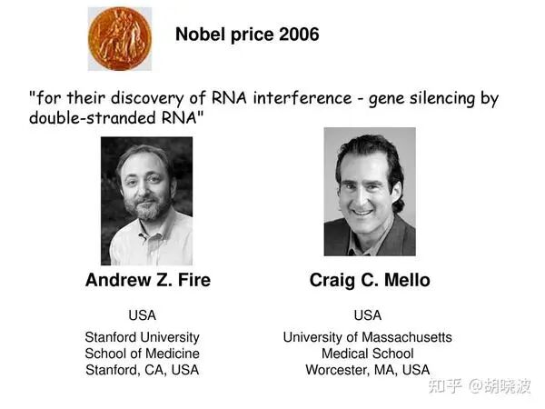 因此,siRNA得诺贝尔奖的时间要早得多(2006年),估计很多人都不记得了,但miRNA现在还是用来研究细胞内部机理的,应用的时间没那么长。