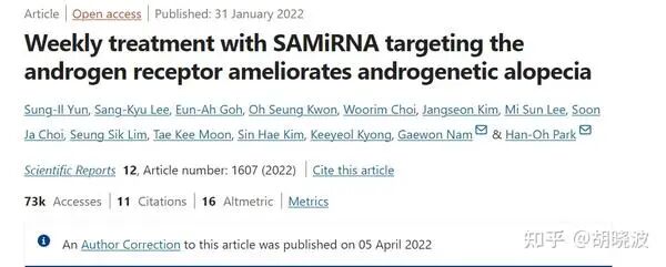 又去翻了下这家公司的论文,它们在2022年也发表了一篇Scientific Reports,证明了这个特殊的siRNA 在24周的临床测试里面,确实能够减少脱发,下回再来看看这篇论文吧~~
