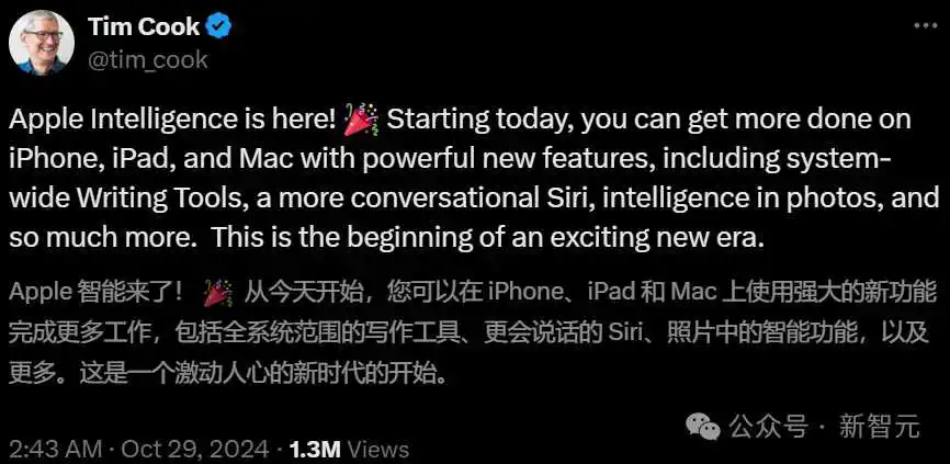 就在刚刚苹果AI正式登录iPhone、iPad和Mac