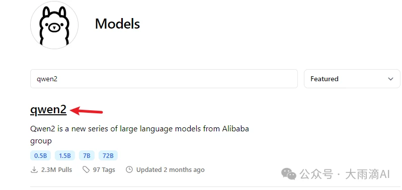 Ollama模型库提供的模型,下载非常简单。先到ollama模型库上去搜索一个已有的模型,