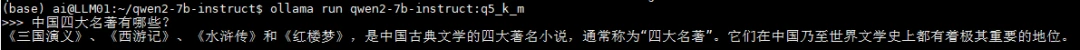 通过这个命令,Ollama会自动创建模型需要的多个Layers(跟Docker相似),成功后就和从Ollama模型库直接拉取的模型一样使用了。