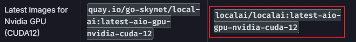 LocalAI官网有较为详细的安装介绍,其中推荐的也最简单的方式就是使用Docker部署。根据本地服务器上Nvidia显卡驱动和安装的CUDA版本,选择合适的Docker镜像。LocalAI是通过给不同类型的模型提供不同的后端支持模块 - Backend -来运行不同类型的大模型提供服务。为了简单,我选用了AIO(All-In-One)类型的Docker镜像,直接预安装了全部Backend模块,包括Rerankers.