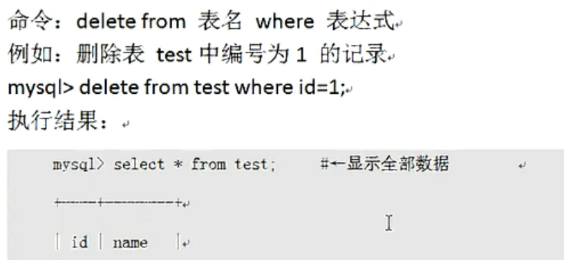 例如:删除名为oldboy 的数据库 mysql>drop database test;