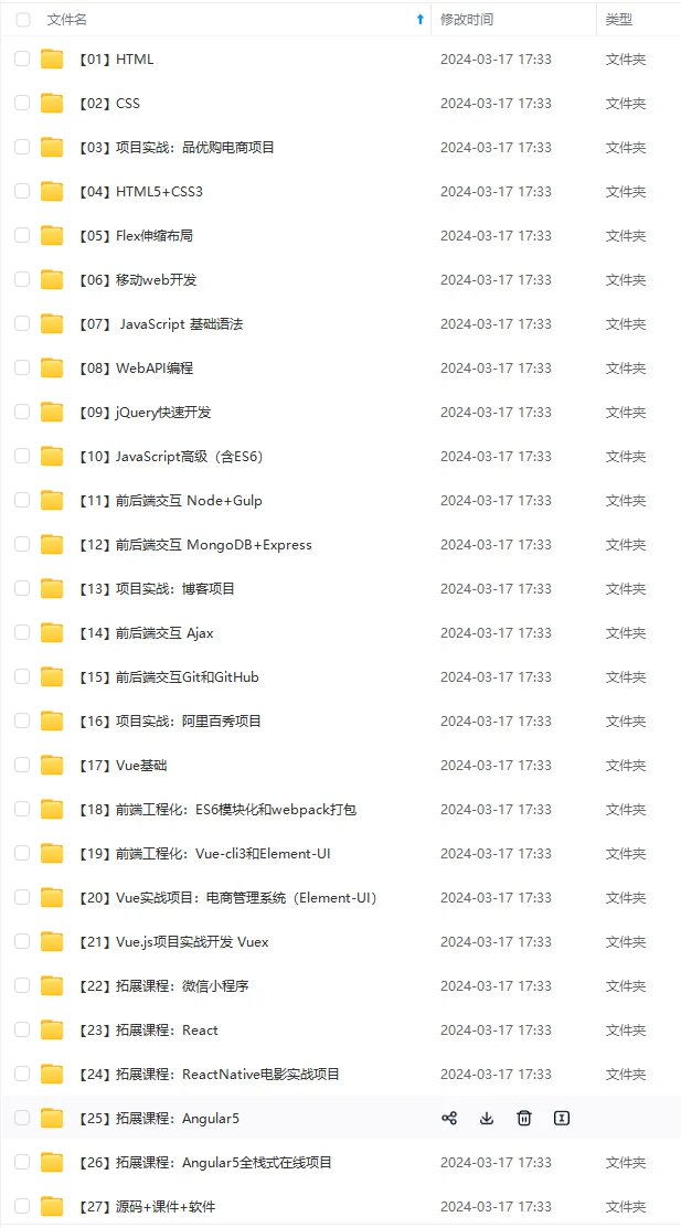 既有适合小白学习的零基础资料,也有适合3年以上经验的小伙伴深入学习提升的进阶课程,基本涵盖了95%以上前端开发知识点,真正体系化!