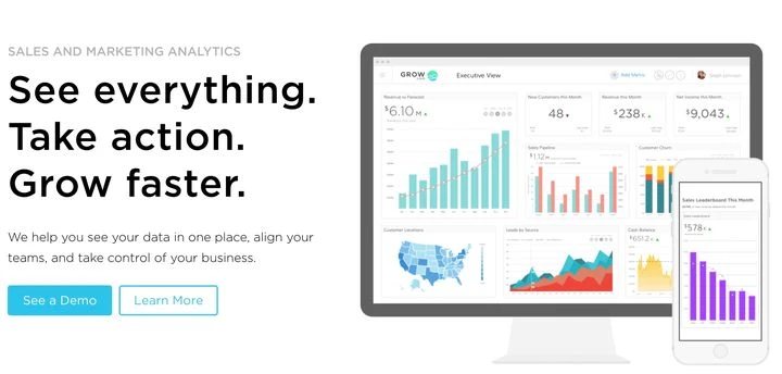 Grow是一个仅供企业用户使用的BI工具。有了Grow,企业里的每个人都可以跟踪他们认为有意义的数据,并创建自己的特定数据仪表板,Grow还支持从150多个数据源导入数据。Grow表示,他们的处理速度是竞争对手的8倍,并支持超过300个预先构建的报告和实时数据更新。