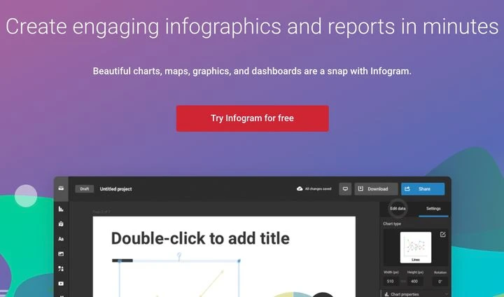 你可以使用Infogram的免费模板创建信息图、图表和地图,而且所有的操作都是在网页端完成的。你可以下载生成后的图表,或将这些图表嵌入到网站中。Infogram功能强大,很受用户欢迎,用户已经用它创建了超过15亿次的图表、报告和信息图表。Infogram除了免费的基础版本外,还提供专业版本、企业版本等。