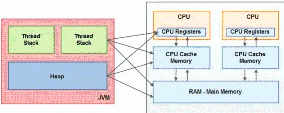 JMM内存模型将内容分为了线程私有内存与主内存两部分,其与我们之前提到的硬件内存模型的对应关系如下所示: