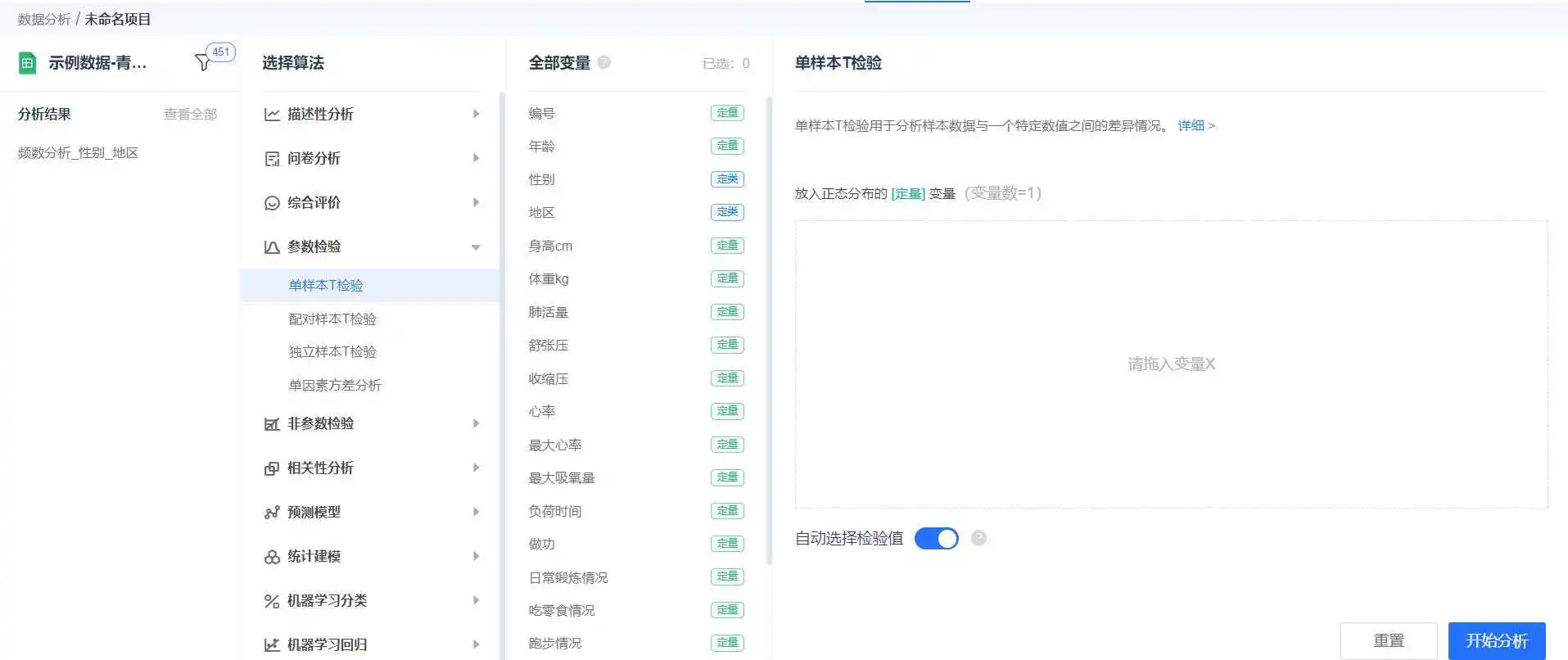 而且,操作很简单,小白也能很快上手,只需要将数据拖入,就可以自动出分析结果、包括分析报告!