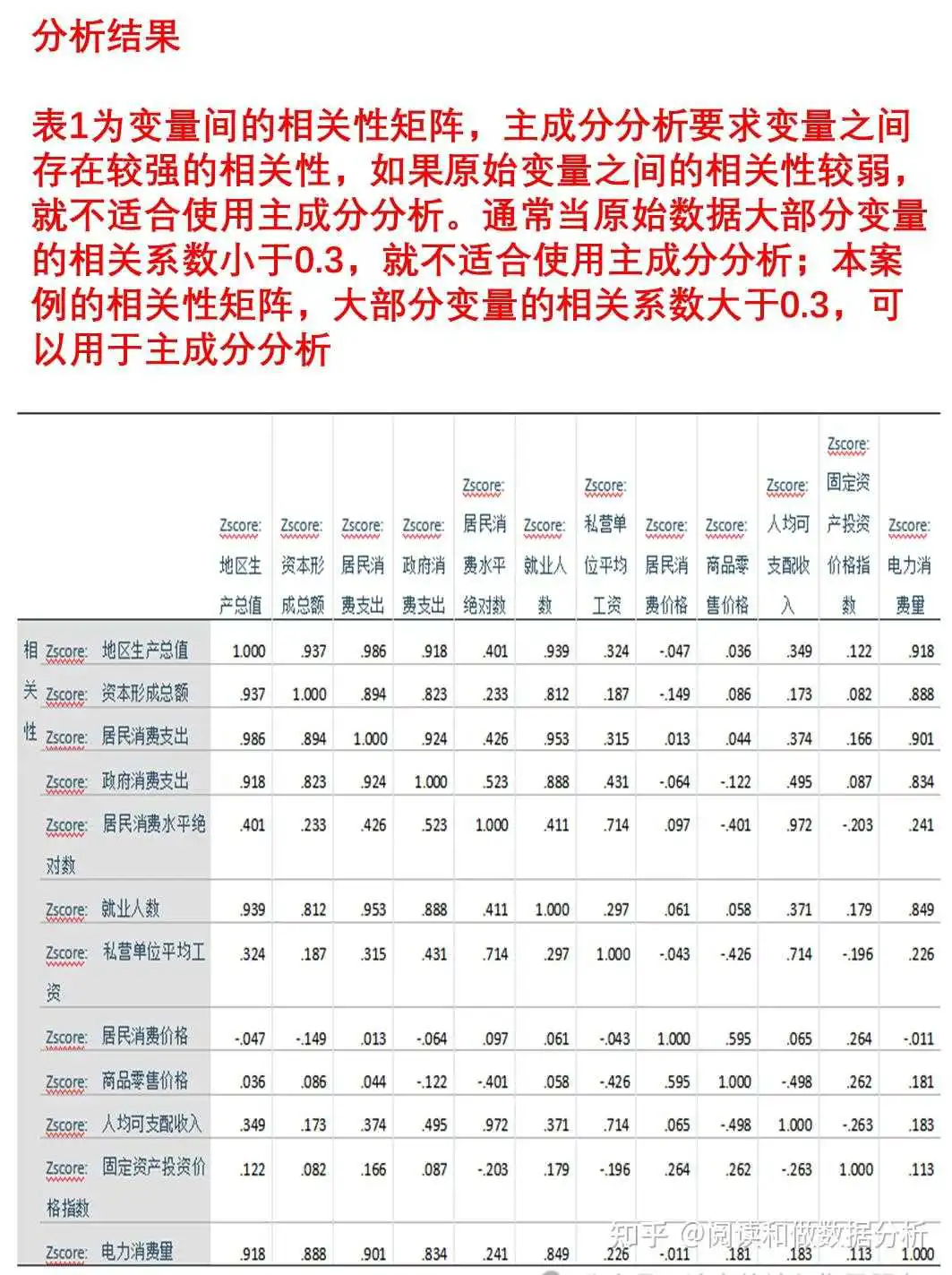 要对多维数据进行主成分分析,要先满足2个假设:1、观测的变量是连续变量或者是有序分类变量;2、变量之间存在线性关系;主成分分析适用于变量之间存在较强相关性的数据,当原始数据的大部分变量的相关系数都小于0.3时,应用主成分分析取得的效果就不理想。