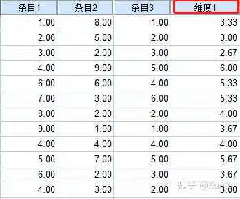 COMPUTE 维度1=MEAN(条目1 TO 条目3). EXECUTE.