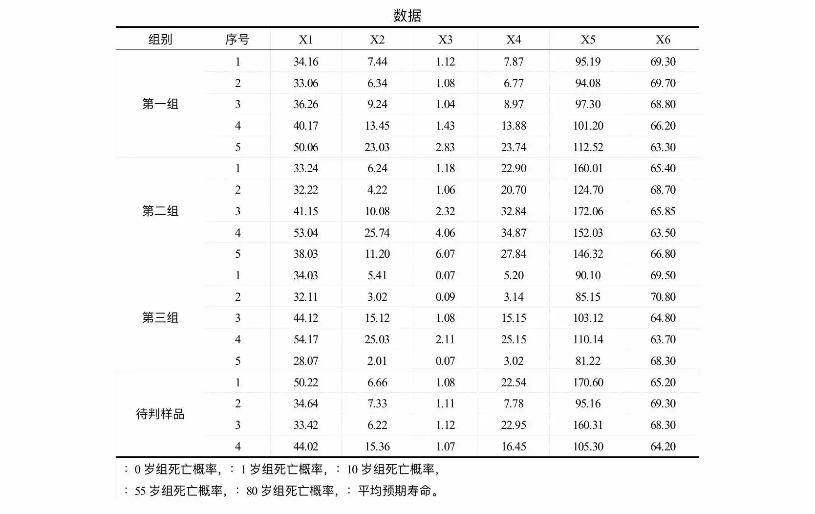 题目:为研究某地区人口死亡状况,已按某种方法将15个已知样本分为3类,指标指标及原始数据如下表,试建立判别函数并判断另外4个判别样品属于哪一类。