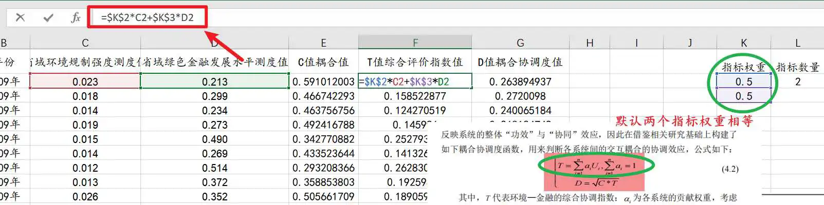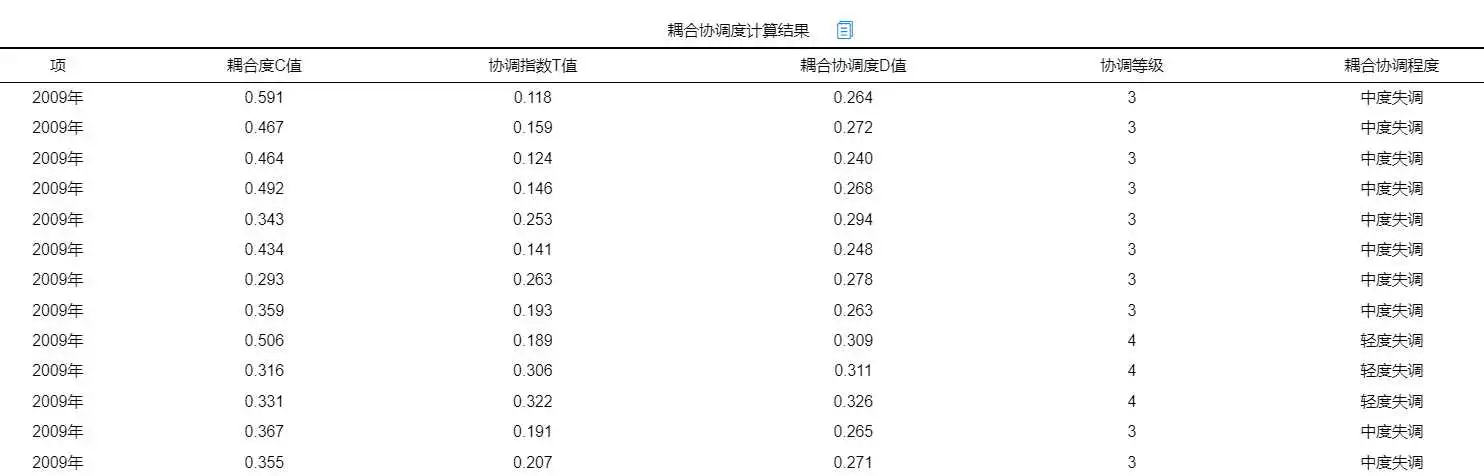 完成耦合度 C 值和协调度 T 值计算后,可计算耦合协调度 D 值;