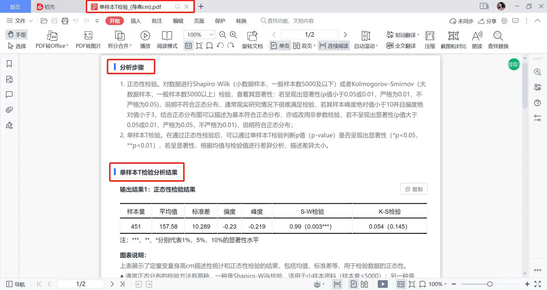分析报告可以下载PDF版,就像这样,非常简单,一键生成分析与解释,关键术语自动注释,没有统计知识也能读懂分析报告