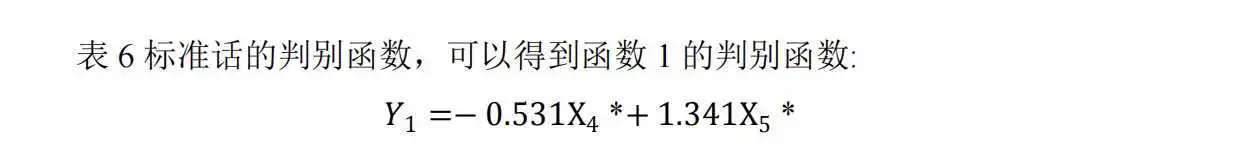 表7为未标准话的判别函数,可以得到函数1的判别函数: