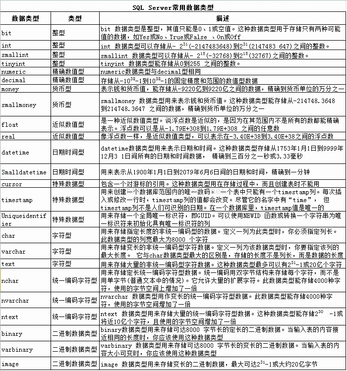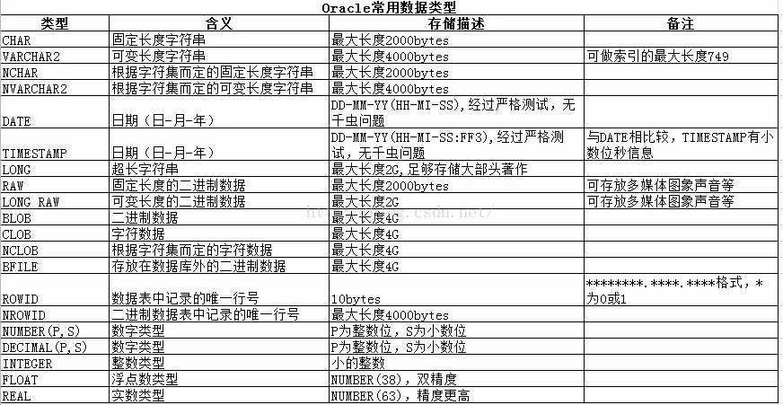 不管何种数据库,常用数据类型无外乎数值型、字符型、日期时间型。下文列出常见数据库的各种常用数据类型。