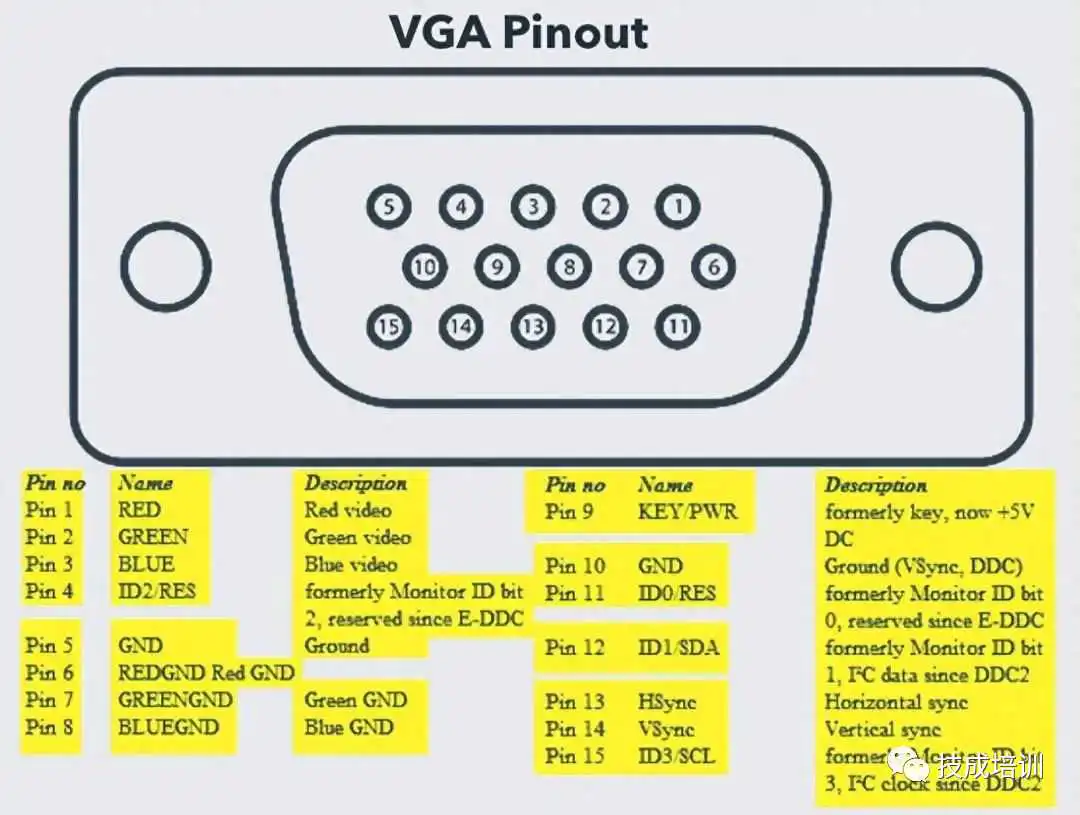 VGA端口的引脚布局