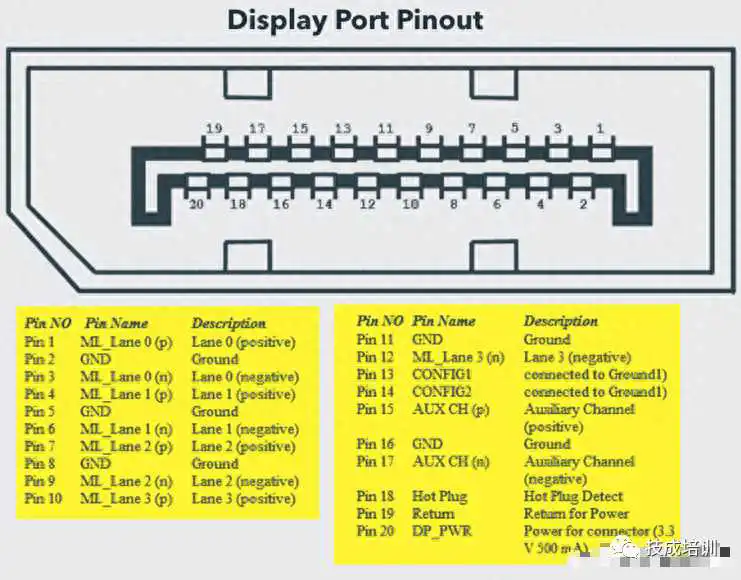 下面是DisplayPort的引脚布局图: