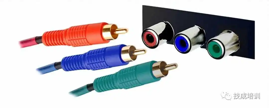 常见的分量视频端口使用3个连接器,颜色编码为绿色、蓝色和红色。