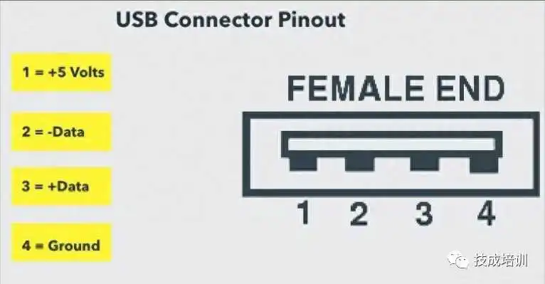USB Type-A端口是一个4引脚连接器。