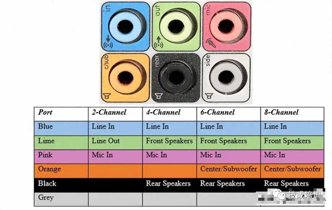 音频端口用于连接扬声器或其他音频输出设备与计算机。音频信号可以是模拟的或数字的,根据这一点,端口及其对应的连接器会有所不同。