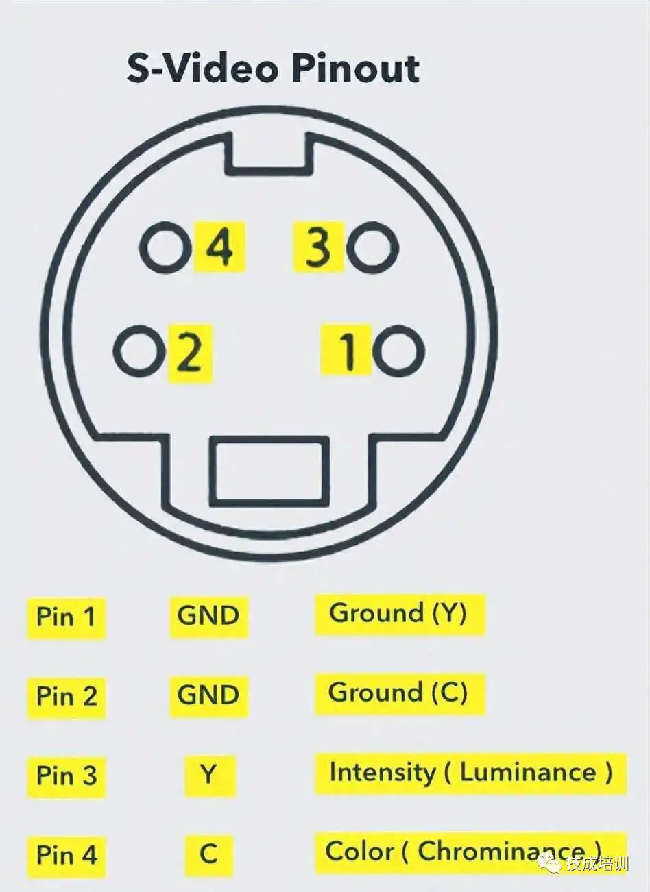 S-Video或分离视频连接器用于传输仅视频信号。其画质比复合视频好,但分辨率较分量视频低。