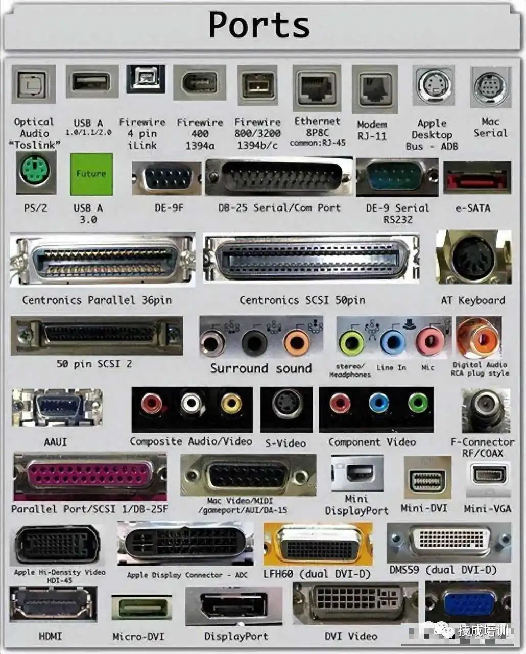计算机端口也被称为通信端口,因为它负责计算机与其外围设备之间的通信。通常,连接器的母头被称为端口,并通常位于主板上。