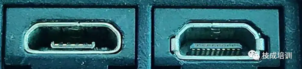 Micro HDMI的尺寸明显比常规HDMI小,并且与Micro-USB端口有一些相似之处(有时人们会混淆两者)。左侧的端口是Micro-USB端口,右侧的是Micro HDMI端口。