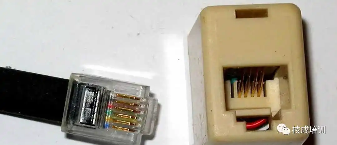 RJ-45和RJ-11端口看起来相似,但RJ-11是一个较小的端口,使用6点-4接触(6P-4C)连接器,尽管6P-2C已经足够。以下是RJ-11端口及其兼容连接器的图片。