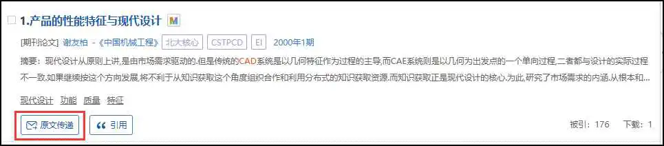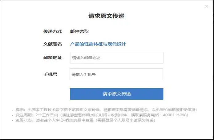 万方智搜除了提供本平台收录的资源外,还与国家科技图书情报中心(NSTL)、国家工程技术数字图书馆(ISTIC)合作,提供文献的原文传递服务。机构用户利用万方智搜检索到来自NSTL和ISTIC的资源,可以通过原文传递服务便捷快速的获取所需资源。