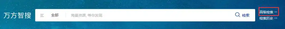 万方智搜检索框的右侧有高级检索的入口,单击进入高级检索界面,然后选择专业检索。