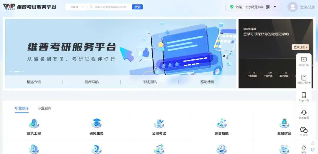 🔷 维普考试资源系统:集日常学习、考前练习、在线考试、模拟测试等功能于一体的大型教育资源数据库,个性化服务轻松满足学生、老师的学习和考试需求。