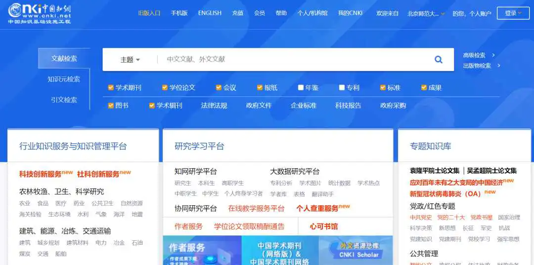 🔷 中国知网:综合型的中文数据库,涵盖期刊、博硕士论文、会议论文、报纸等学术与专业资料,我馆订购了该平台22个字库,各类资源一网打尽!