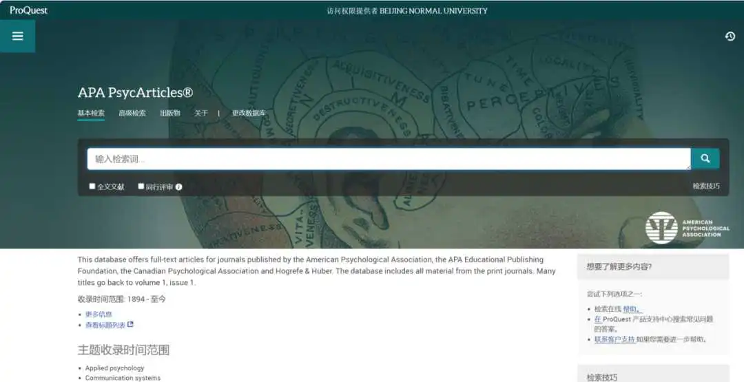 🔷 ProQuest:综合型外文数据库平台,包含20余个子库,既有ProQuest - Education Database、ProQuest - Psychology Database等学科专业数据库,也有ProQuest - Research Library综合型数据库,还有除期刊外的其他类型资源,如ProQuest - Ebook Central、ProQuest - Dissertations & Theses Global等电子书、学位论文数据库。