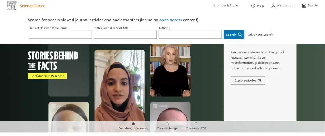 🔷 Elsevier ScienceDirect:全球知名出版集团爱思唯尔(Elsevier)旗下的数据库,收录了爱思唯尔出版的外文期刊4700余种及图书3.4万余种,我馆订购了其中大部分期刊以及部分学科电子书。