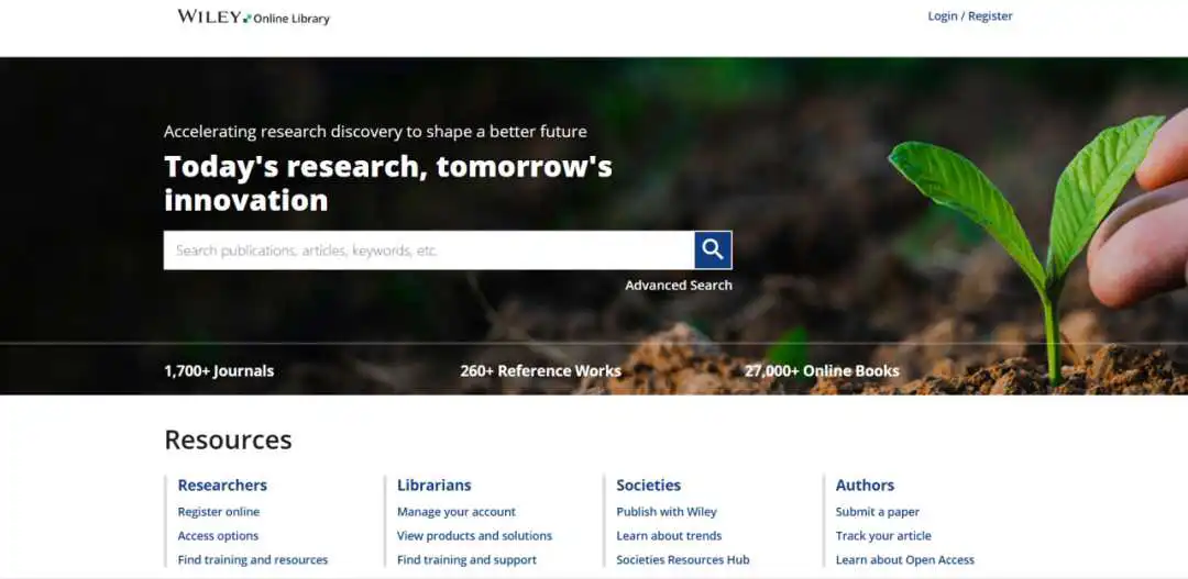 🔷 Wiley Online Library:全国知名出版集团约翰威立(John Wiley)旗下的数据库,收录了约翰威立出版的外文期刊2800余种,电子书2.6万余种,其中,我校订购了其中大部分期刊以及部分学科电子书。