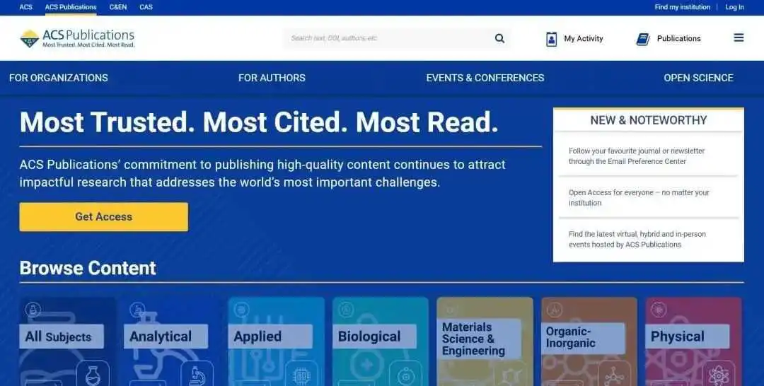 这些数据库的内容主要聚焦于某一个或几个学科,提供更加专深的文献资源。例如,学协会或研究机构创建的数据库,如美国化学学会的American Chemical Society Journals、美国物理学会的American Physical Society Journals、美国数学学会的American Mathematical Society Journals和美国心理学会的PsycArticles数据库等。