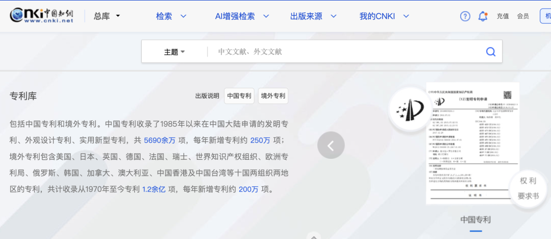 包括《CNKI中国专利全文数据库》和《CNKI海外专利摘要数据库》。