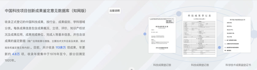 收录年限:1978年至今的科技成果,部分成果回溯至1920年。