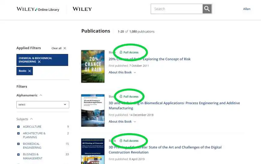 Wiley在线图书与期刊同在Wiley Online Library平台,该平台是目前世界上内容最广泛的多学科在线资源平台之一。截至目前WOL的在线图书有27,000余种,覆盖全学科,包括化学;物质科学与工程学、计算机;商业、经济、财务、会计;数学与统计学;人文科学;医学;社会与行为科学;地球、空间科学,环境科学,生命科学、农业食品科学;兽医科学等等。