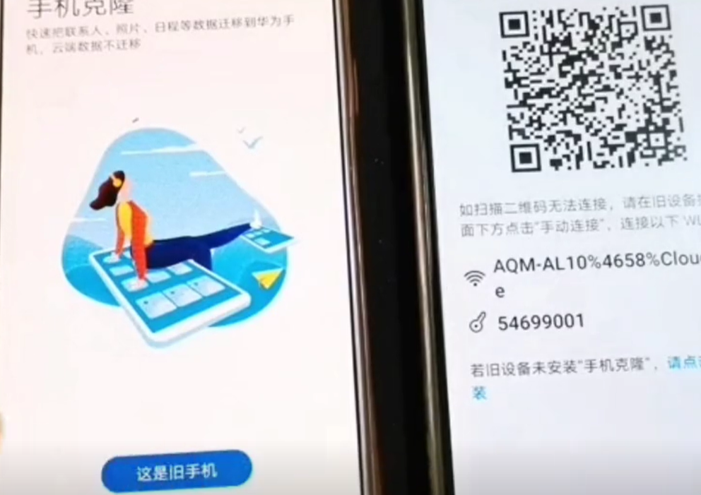 然后,我们用这个旧手机,扫描新手机上面的这个二维码,正在连接中。