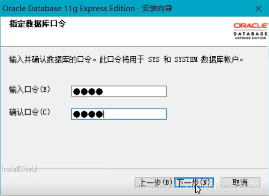 4、设置数据库口令,即数据库密码,建议设置简单一点,方便以后使用。例如:root,然后单击 “下一步” 。