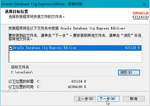 若想进行修改,首先建议在想要安装的路径下新建一个名为oraclexe的文件夹,然后单击 “浏览” ,选择到目标文件夹处,然后单击 “下一步” 。