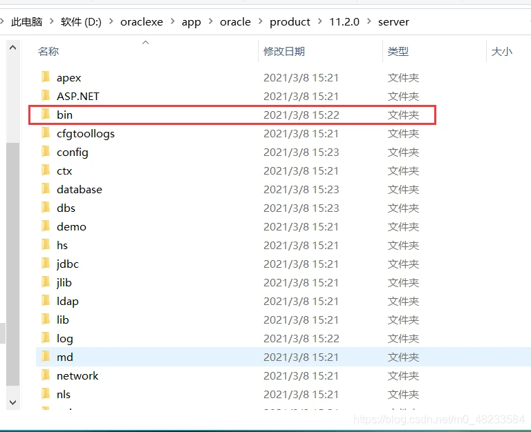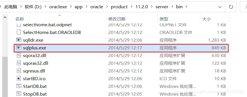 4、进入bin文件夹,找到 sqlplus.exe 程序,双击运行。