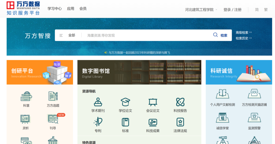 特点:提供丰富的学术期刊、会议论文、专利、标准等文献资源。