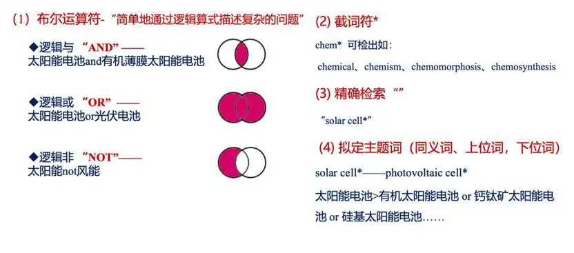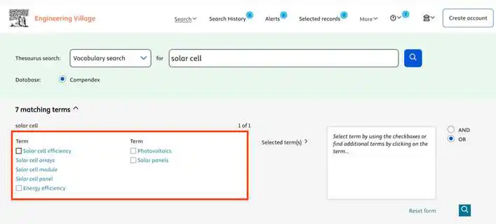 ◆检索方式有快速搜索、专业搜索以及同义词搜索。选择同义词搜索并输入检索关键词后,下方自动弹出匹配术语,可选择并使用“AND” 或“OR”组合检索。
