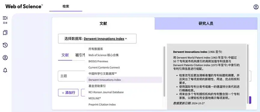 Web of ScienceTM(Derwent Innovation Index-DII专利数据库)