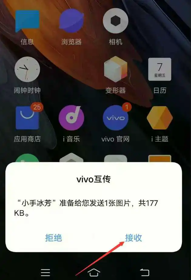 8.在接收端设备点击“接收”;