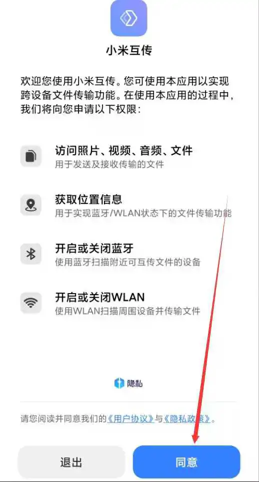 4.在新页面点击“同意”,即可打开小米互传;